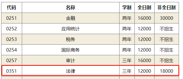 法律(非法學)、法律(法學):非全日制學制3年,學費54000元/生/年