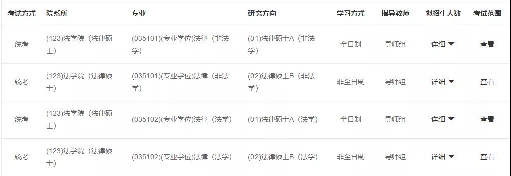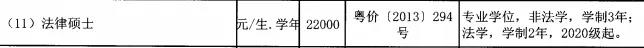 法律碩士(非法學):全日制學制3年,學費22000元/生·學年