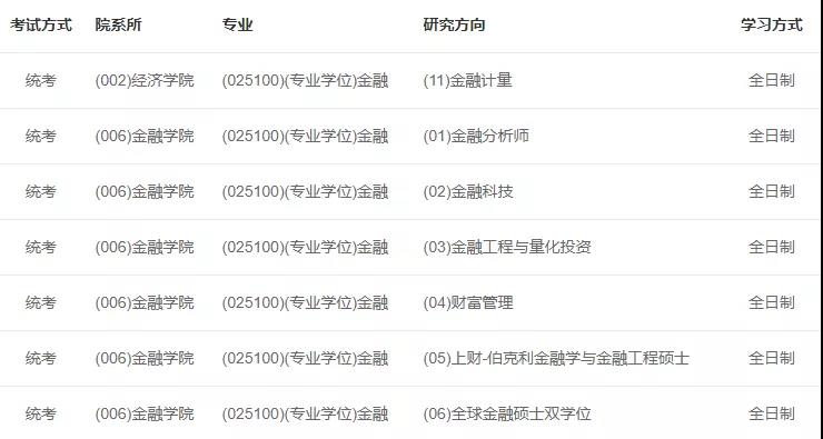 上海財經(jīng)大學(xué)2021年金融專碩研究方向如下: