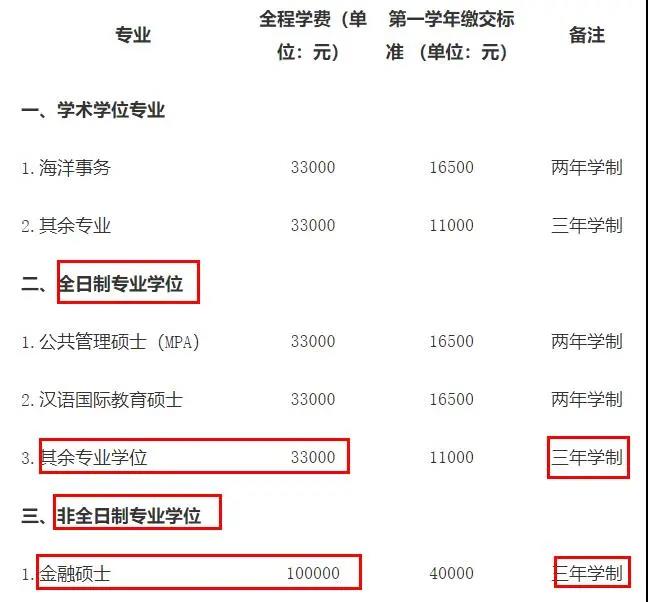 廈門大學(xué)2021年金融專碩學(xué)制學(xué)費(fèi):全日制學(xué)制為3年,學(xué)費(fèi)為3.3萬元/全程;非全日制學(xué)制為3年,學(xué)費(fèi)為10萬元/全程