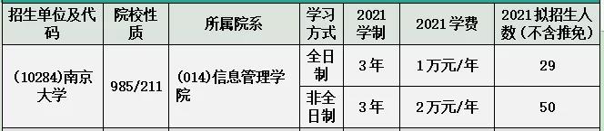 南京大學2021年圖書情報碩士專業全日制擬錄取人數為88人,非全日制擬錄取招生人數為49人。