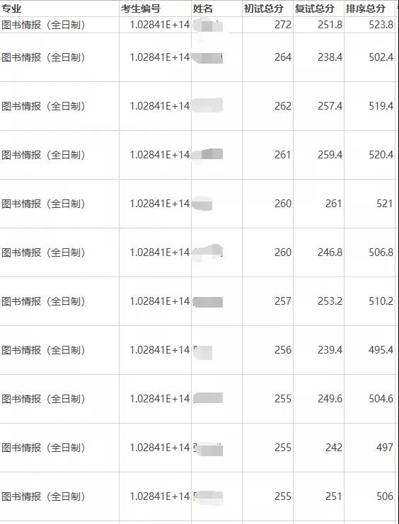 2021年復試分數線:224/92/46,圖書情報(退役大學生計劃)分數線180/92/46。