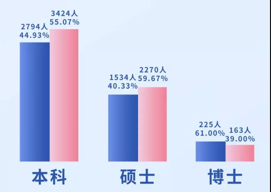蘇州大學2020屆碩士畢業生男生1534人,占比40.33%,碩士畢業生女生2270人,占比59.67%。2020屆碩士畢業生就業率為94.35%。