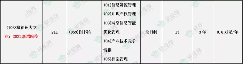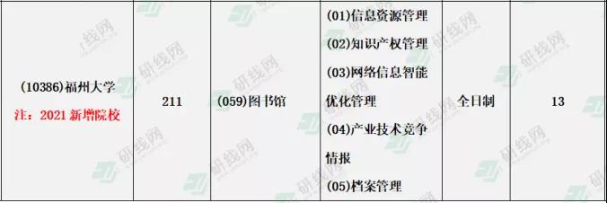 福州大學2021年圖書情報碩士專業全日制擬錄取人數為13人。