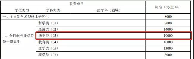 法律(非法學):全日制學制3年,學費10000元/生/年