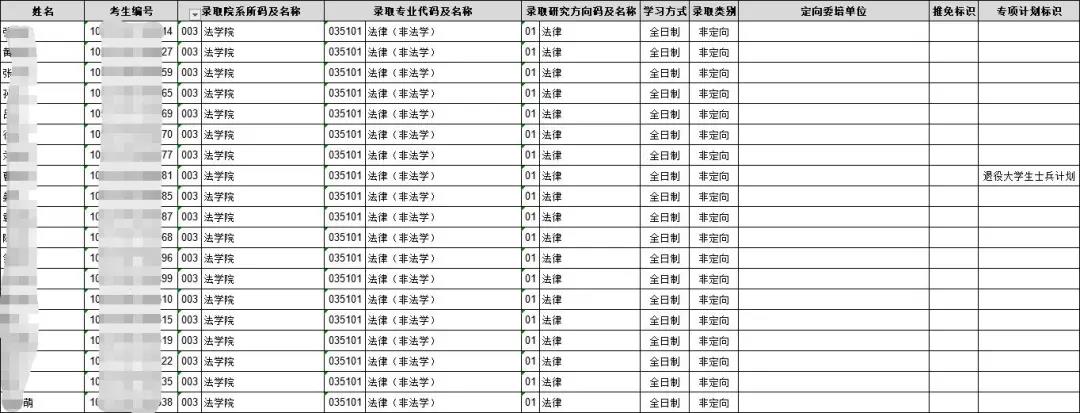 法律(非法學):全日制錄取32人,最高分395分,最低分351分。