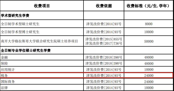 南開大學2021年稅務碩士研究生學制學費:學制為2年,學費為2.4萬元/生·年