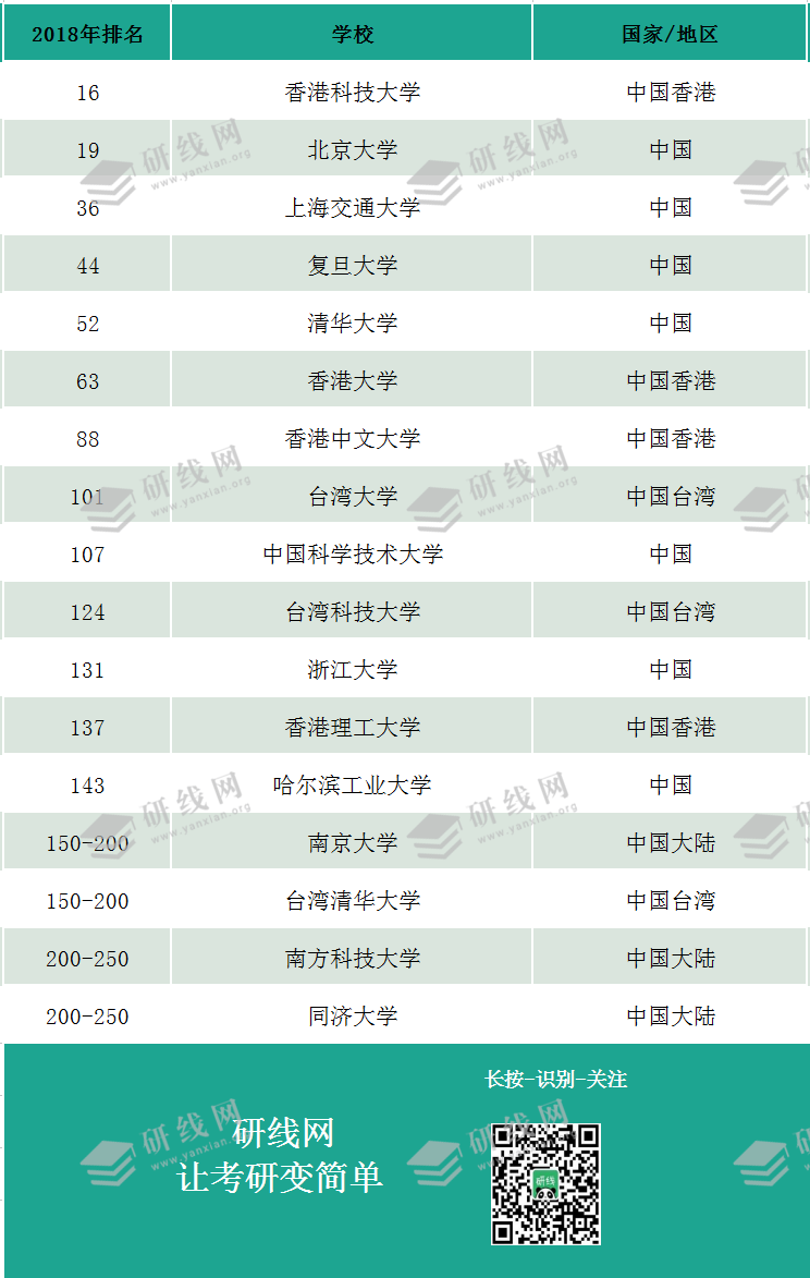 在這次公布2018年全球大學(xué)畢業(yè)生就業(yè)能力排行榜單中,我們可以看到:中國高校表現(xiàn)平穩(wěn),在上榜的前250所高校中有17所中國高校,其中中國大陸10所,中國香港4所,中國臺灣3所。