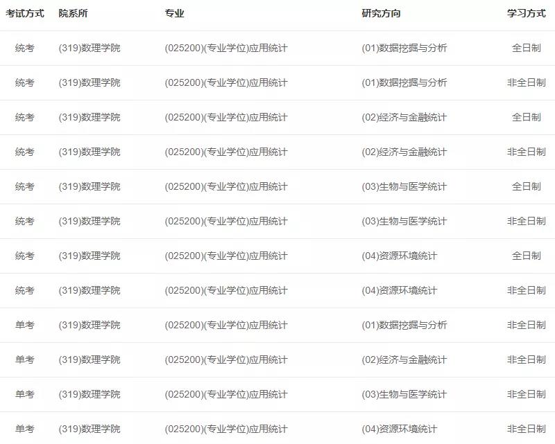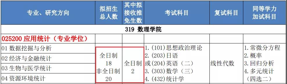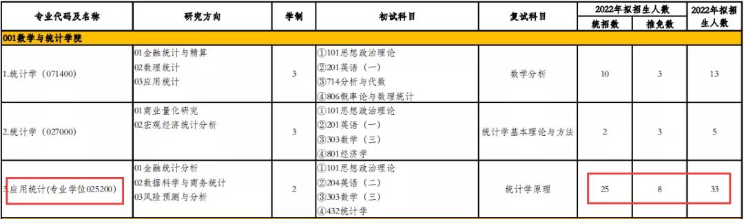 2022年應(yīng)用統(tǒng)計(jì)碩士專業(yè)計(jì)劃招生全日制18人(包括推免生2人),非全日制20人(不包含推免人數(shù))