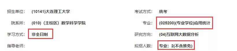 大連理工大學(xué)(盤錦校區(qū))數(shù)學(xué)科學(xué)學(xué)院2021年應(yīng)用統(tǒng)計碩士專業(yè)全日制擬錄取人數(shù)為10人(不包含推免)