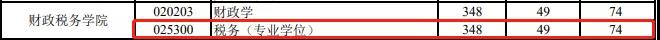 山東財經大學2021年稅務碩士復試分數線為348/74/49