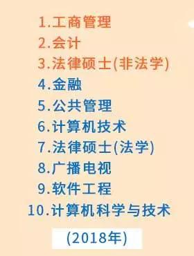 由此可見,工商管理、會計、法律碩士(非法學)連續數年成為報考專業的前三甲,依然是最熱門的專業。