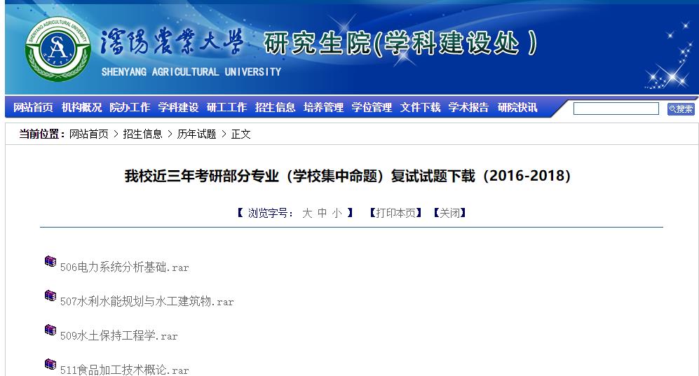 沈陽農(nóng)業(yè)大學(xué)近三年考研部分專業(yè)(學(xué)校集中命題)復(fù)試試題下載(2016-2018)