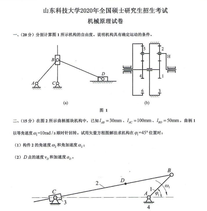 以上就是小編整理的“考研真題:山東科技大學(xué)813機(jī)械原理2020年碩士研究生自命題試題”的全部內(nèi)容!更多真題資料請關(guān)注“考研專業(yè)課真題”欄目!祝考研成功!