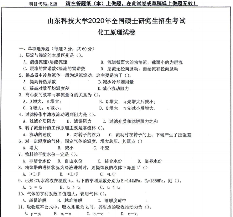 考研真題:山東科技大學825化工原理2020年碩士研究生自命題試題”的全部內(nèi)容!更多真題資料請關注“考研