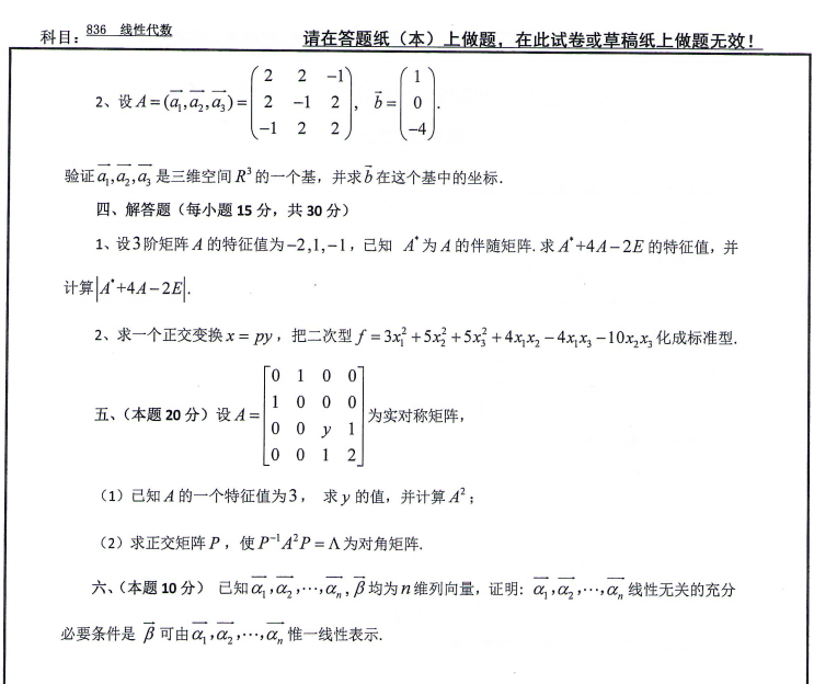 以上就是小編整理的“考研真題:山東科技大學836線性代數2020年碩士研究生自命題試題”的全部內容!更多真題資料請關注“考研專業課真題”欄目!祝考研成功!