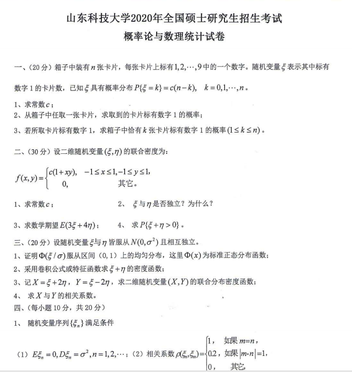 以上就是小編整理的“考研真題:山東科技大學837概率論數理統計2020年碩士研究生自命題試題”的全部內容!更多真題資料請關注“考研專業課真題”欄目!祝考研成功!