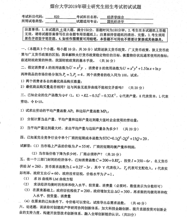 以上就是小編分享“考研真題:2019年煙臺大學經濟管理學院碩士研究生招生考試初試自命題-820經濟學綜合”的全部內容內容,想了解更多考研相關信息,請持續關注研線網。