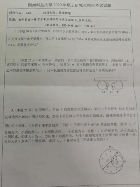 以上就是小編整理的“考研真題:湖南科技大學613-普通物理2020碩士招生考試自命題科目試題”的全部內容!更多真題資料請關注“考研專業課真題”欄目!祝考研成功!