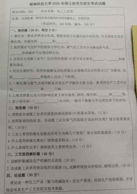 以上就是小編整理的“考研真題:湖南科技大學826-化工工藝學2020碩士招生考試自命題科目試題”的全部內容!更多真題資料請關注“考研專業課真題”欄目!祝考研成功!