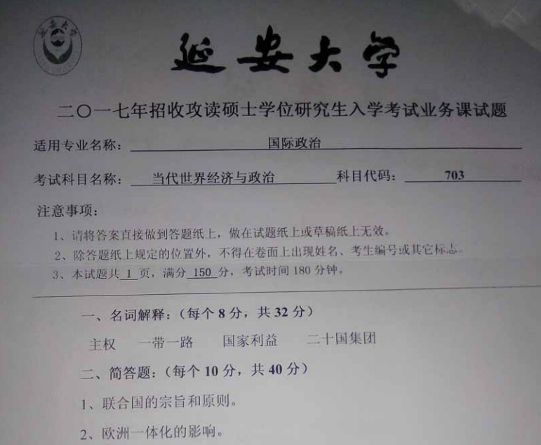 考研真題:延安大學(xué)703當(dāng)代世界經(jīng)濟(jì)與政治2017年碩士研究生招生考試初試業(yè)務(wù)課試題