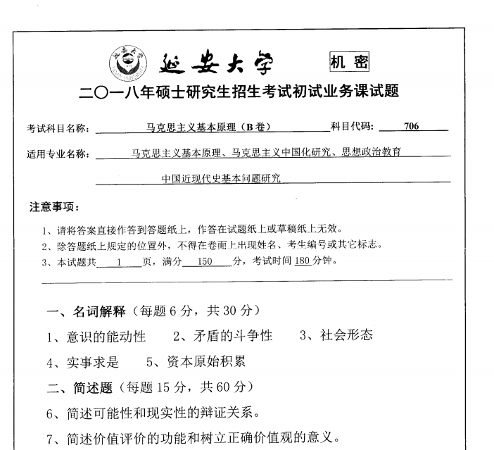 以上就是小編分享“考研真題:延安大學(xué)706?馬克思主義基本原理2018年碩士研究生招生考試初試業(yè)務(wù)課試題”的全部內(nèi)容內(nèi)容,想了解更多考研相關(guān)信息,請持續(xù)關(guān)注研線網(wǎng)。