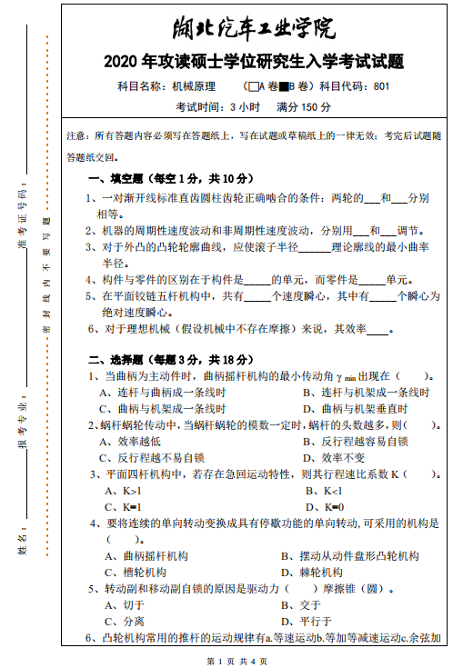 ?原文標題:2020年碩士研究生入學考試自命題試題