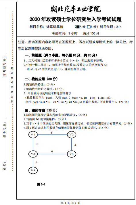以上就是小編整理的“考研真題:湖北汽車工業(yè)學(xué)院814計算機(jī)基礎(chǔ)2020年攻讀碩士學(xué)位研究生招生入學(xué)考試試題”的全部內(nèi)容!更多真題資料請關(guān)注“考研專業(yè)課真題”欄目!祝考研成功!