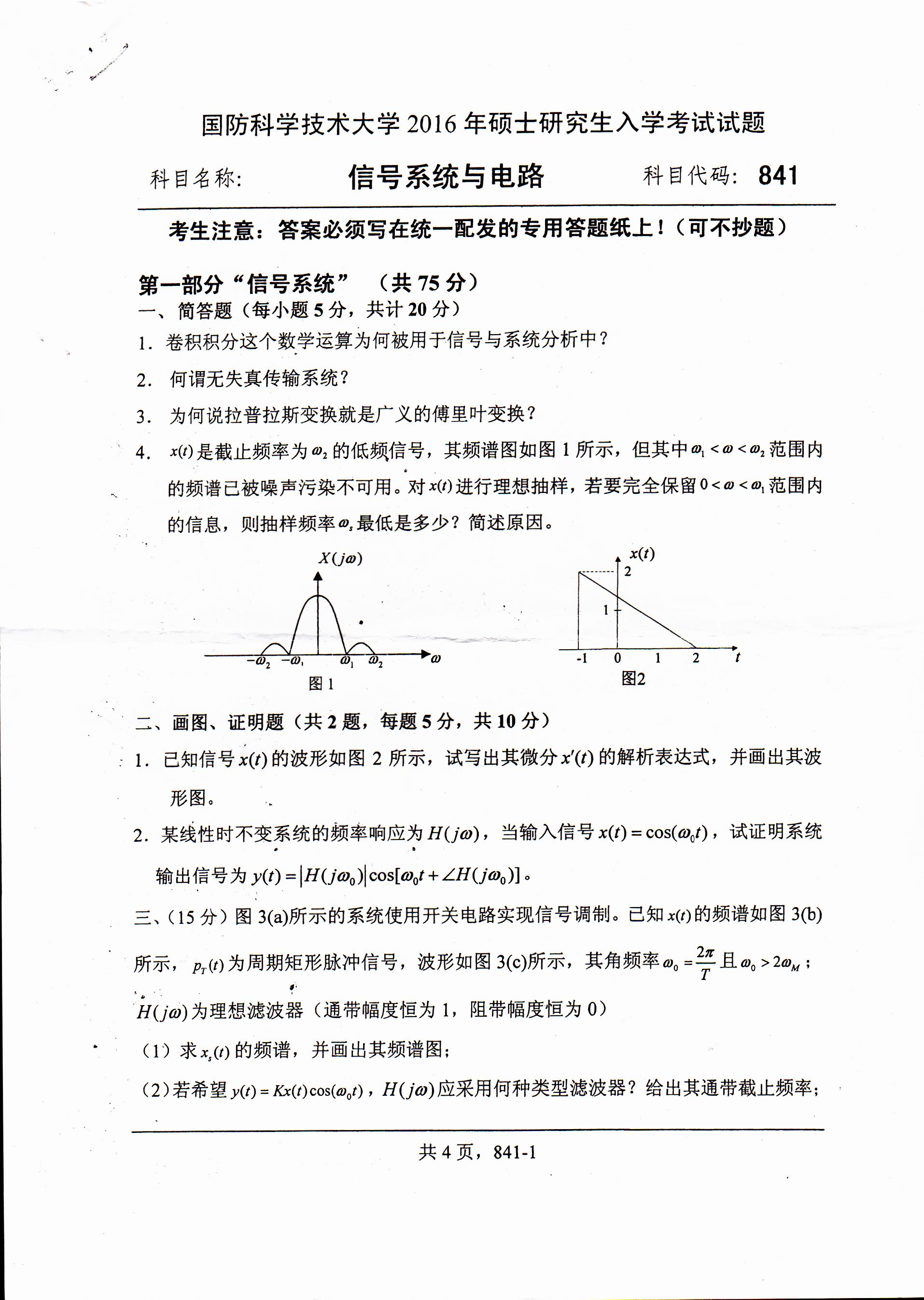 以上就是“考研真題:國防科技大學信號系統與電路2016年碩士研究生專業課試題”的相關內容,更多考研信息,請持續關注。