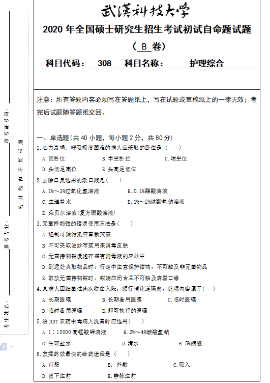 以上就是小編整理的“考研真題:武漢科技大學(xué)308護(hù)理綜合2020年碩士研究生招生考試初試自命題試題”的全部?jī)?nèi)容!更多真題資料請(qǐng)關(guān)注“考研專業(yè)課真題”欄目!祝考研成功!