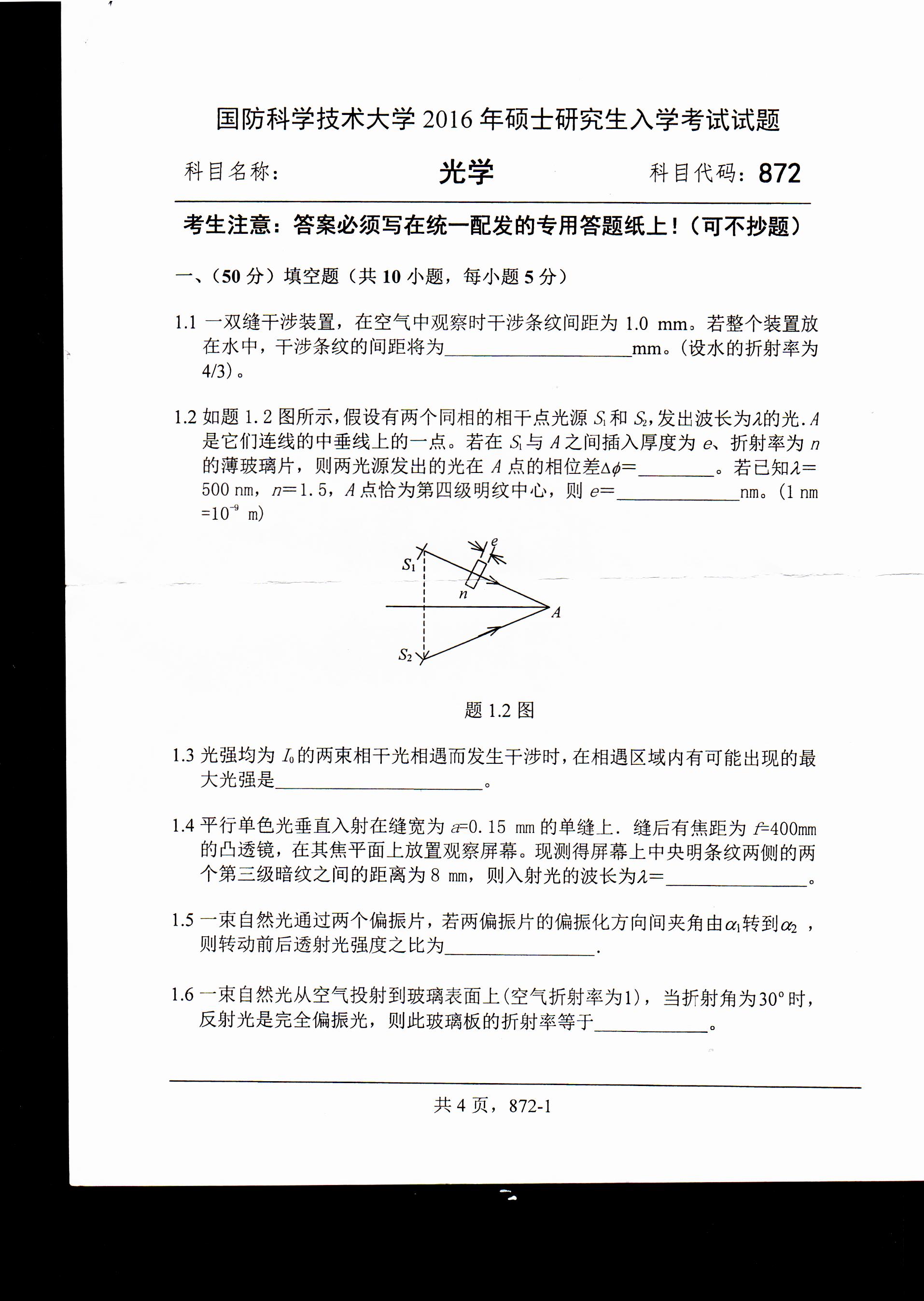 以上就是“考研真題:國(guó)防科技大學(xué)光學(xué)2016年碩士研究生專業(yè)課試題”的相關(guān)內(nèi)容,更多考研信息,請(qǐng)持續(xù)關(guān)注。
