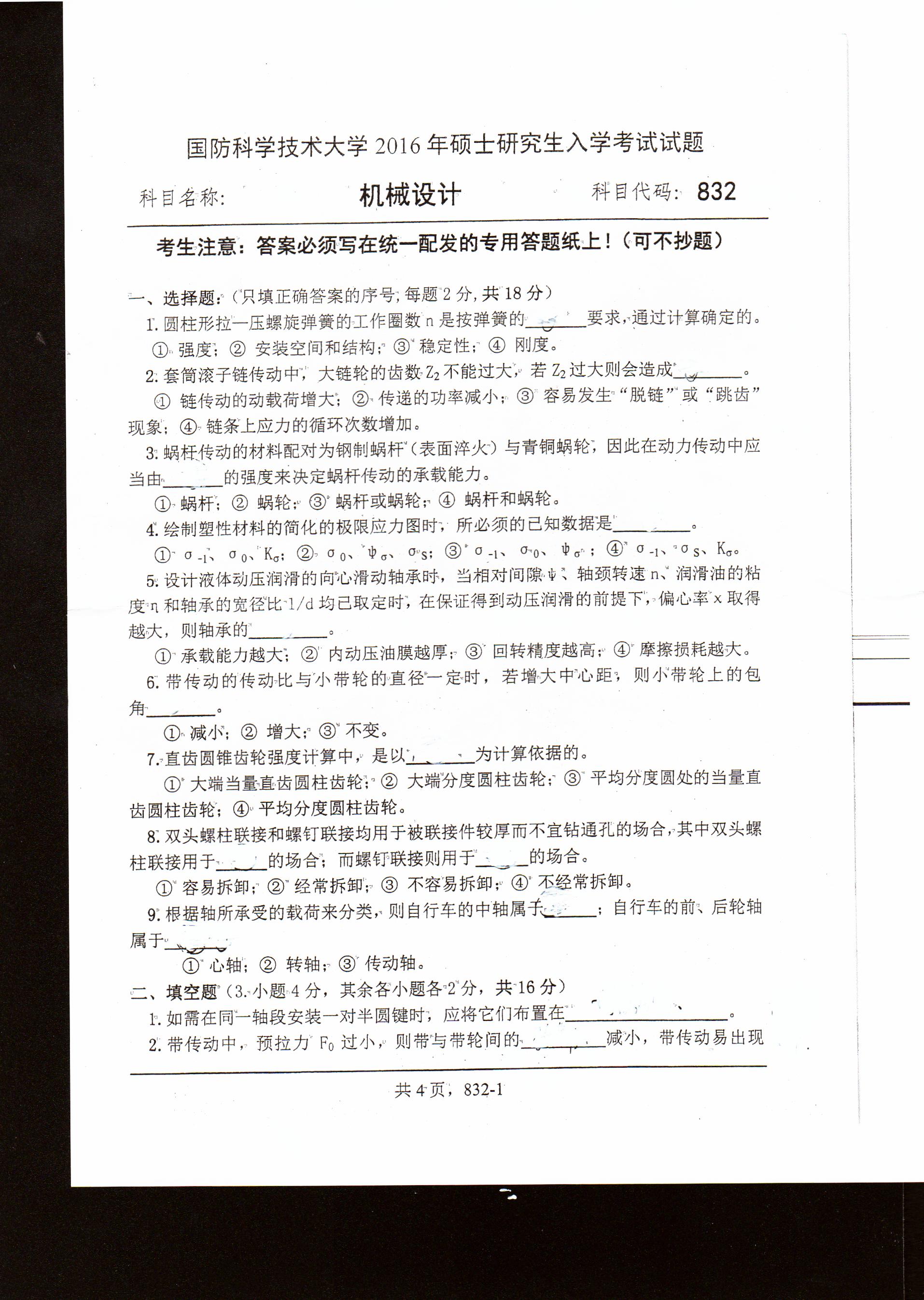 以上就是“考研真題:國防科技大學機械設計2016年碩士研究生專業課試題”的相關內容,更多考研信息,請持續關注。