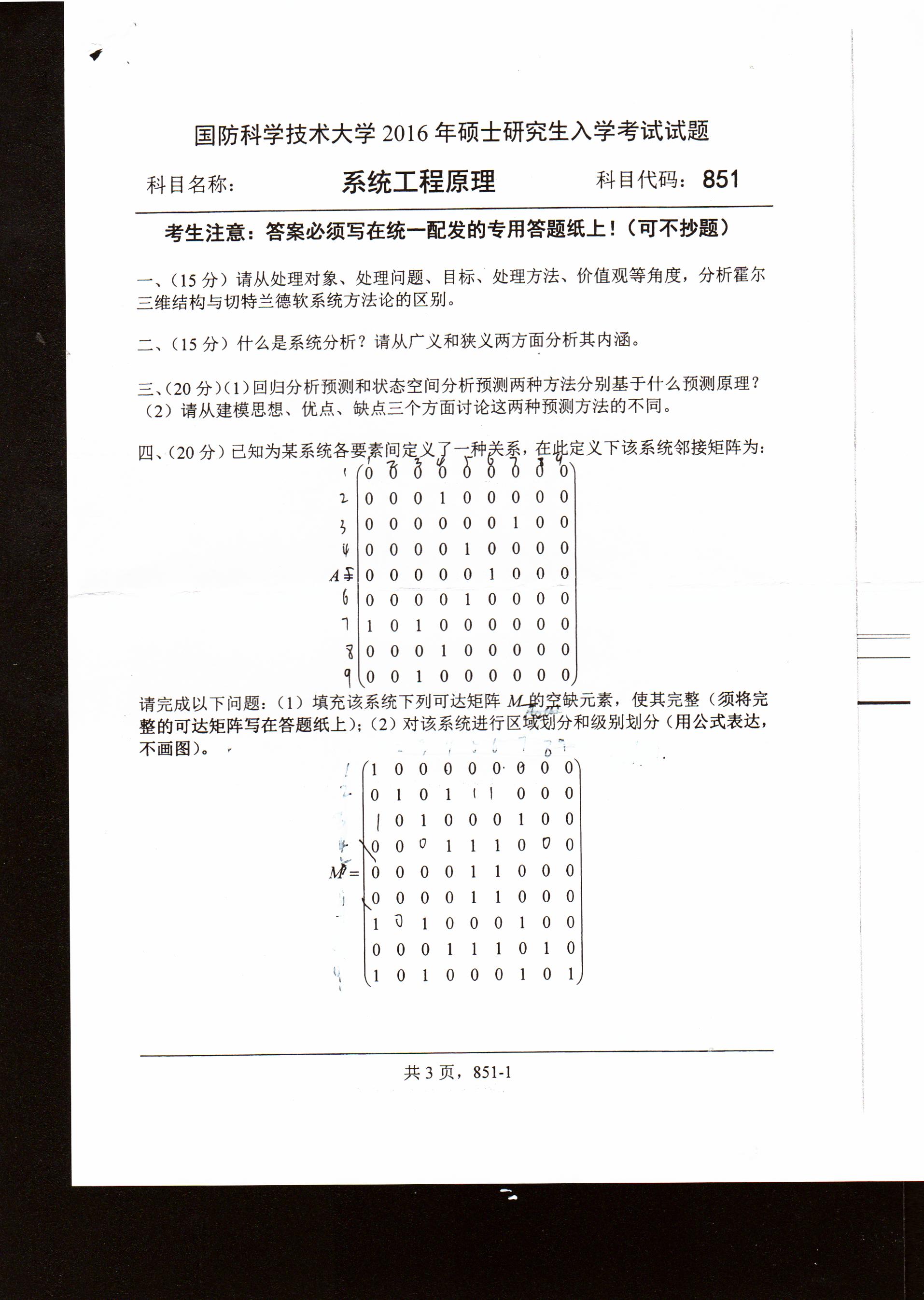 以上就是“考研真題:國防科技大學系統工程原理2016年碩士研究生專業課試題”的相關內容,更多考研信息,請持續關注。