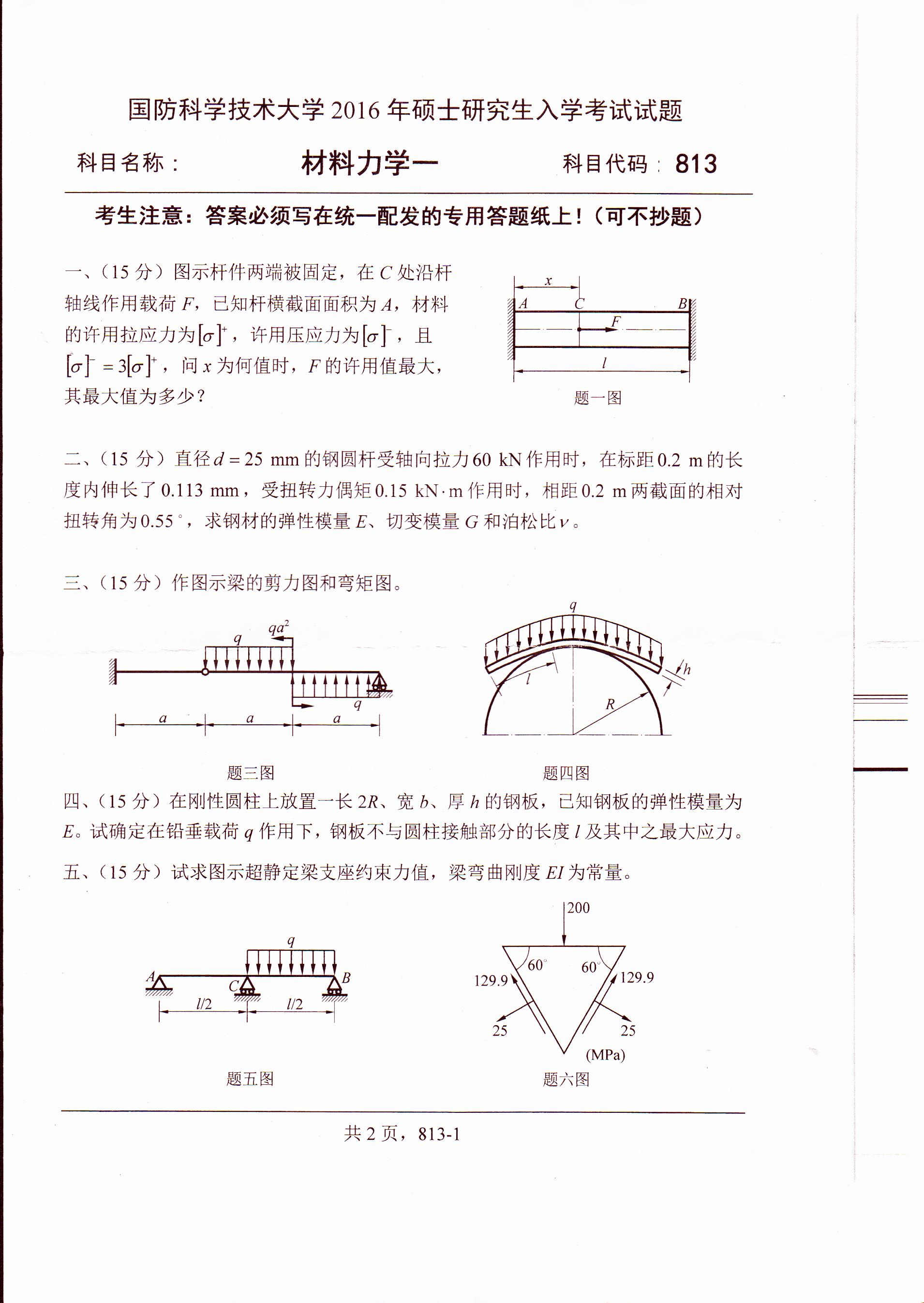 以上就是“考研真題:國防科技大學材料力學2016年碩士研究生專業課試題”的相關內容,更多考研信息,請持續關注。