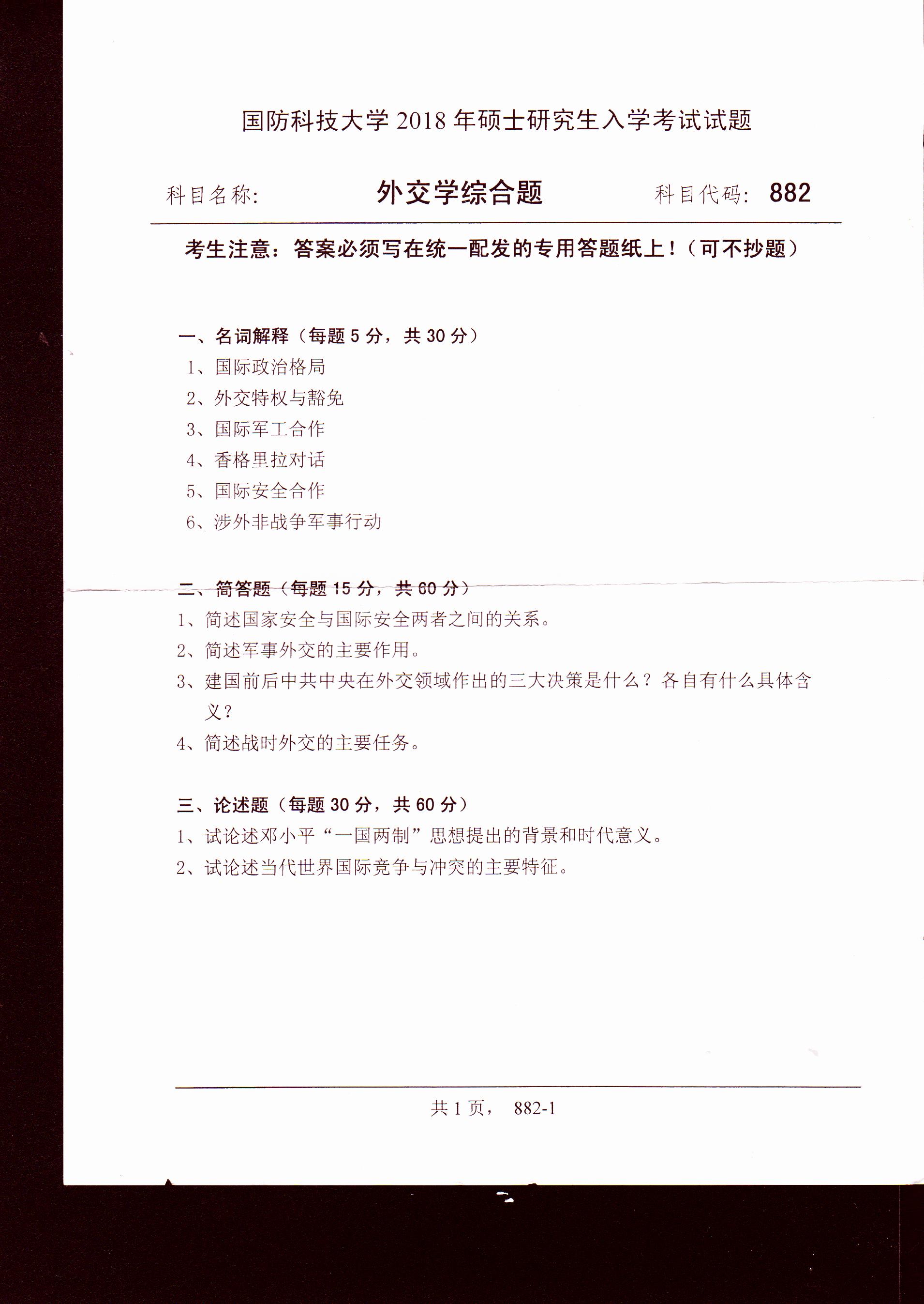 以上就是“考研真題:國防科技大學外交學綜合題2018年碩士研究生專業課試題”的相關內容,更多考研信息,請持續關注。