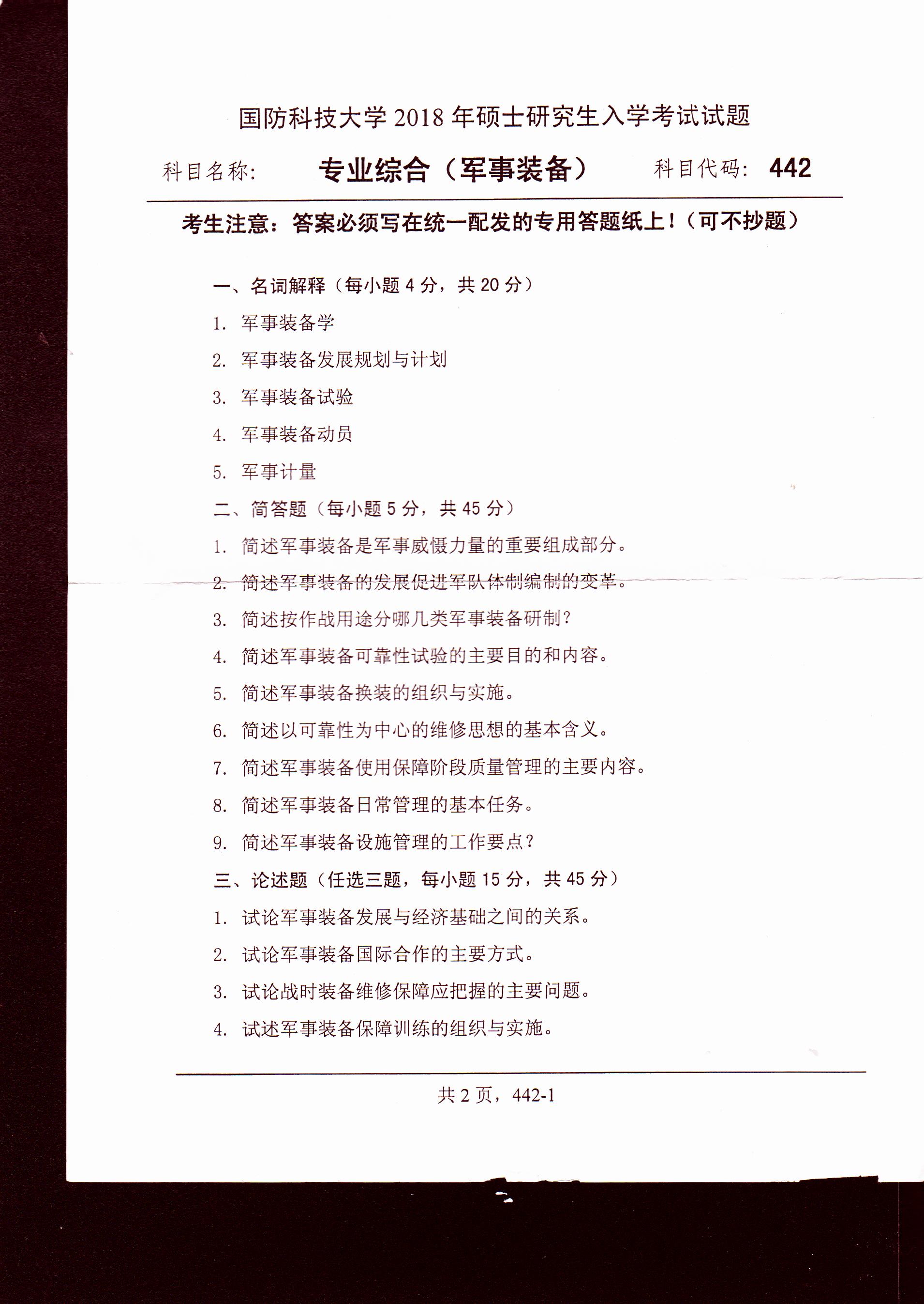 以上就是“考研真題:國防科技大學專業綜合(軍事裝備)2018年碩士研究生專業課試題”的相關內容,更多考研信息,請持續關注。