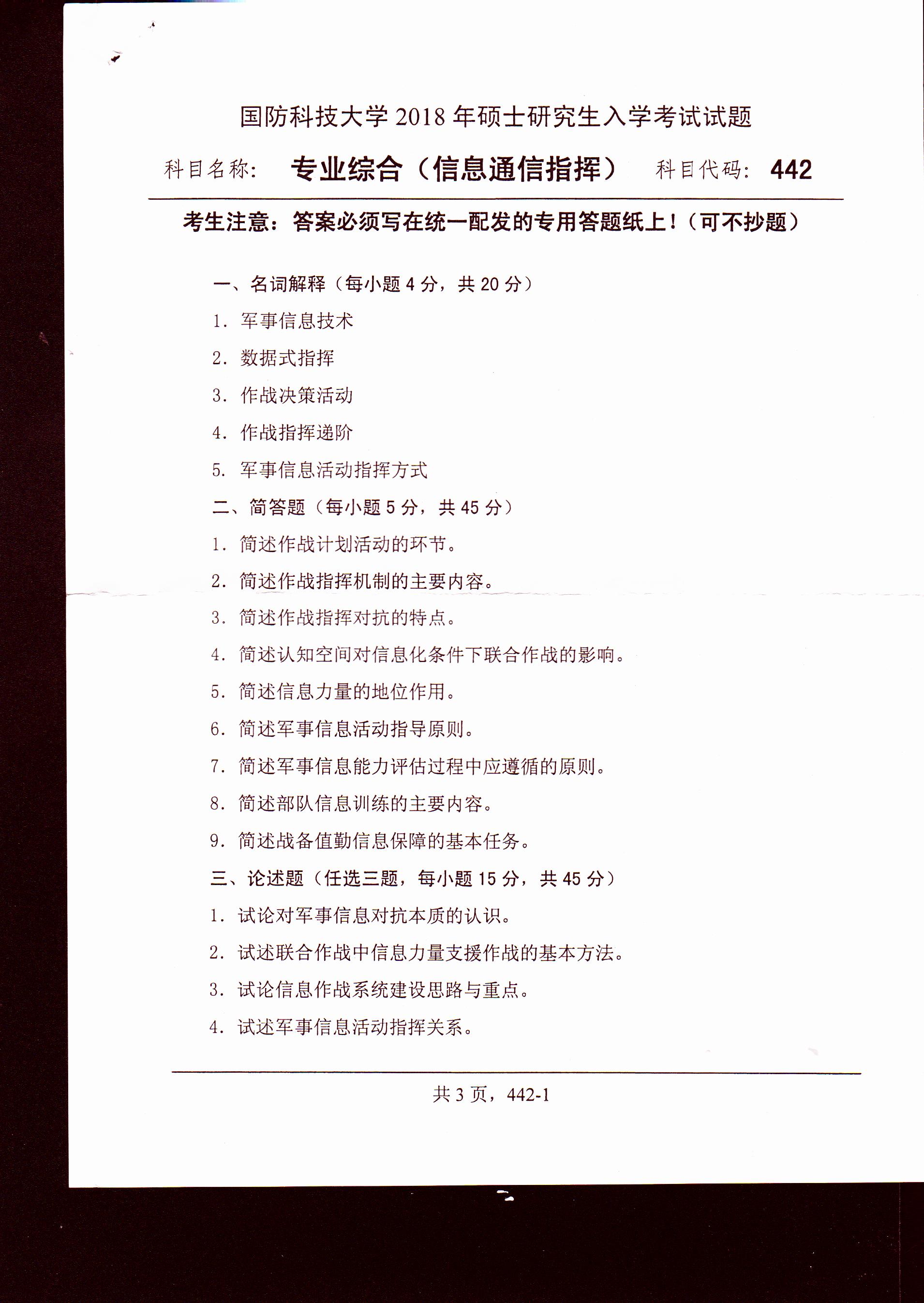 以上就是“考研真題:國防科技大學(xué)專業(yè)綜合(信息通信指揮)2018年碩士研究生專業(yè)課試題”的相關(guān)內(nèi)容,更多考研信息,請持續(xù)關(guān)注。