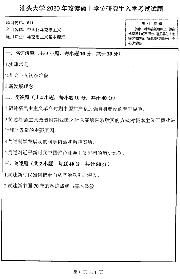 以上就是小編整理的“考研真題:汕頭大學(xué)611中國化馬克思主義2020年碩士研究生招生考試試題”的全部內(nèi)容!更多真題資料請(qǐng)關(guān)注“考研專業(yè)課真題”欄目!祝考研成功!