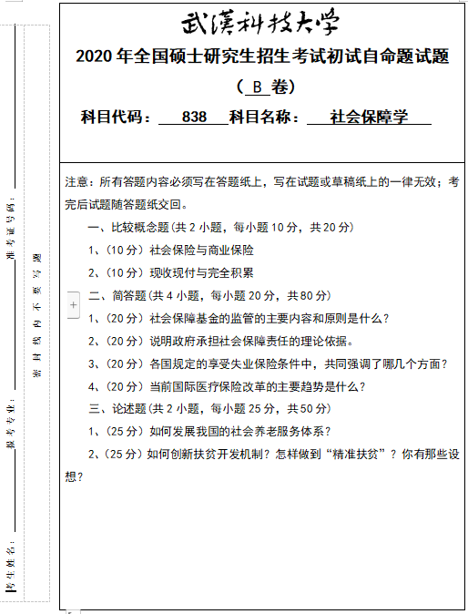 以上就是小編整理的“考研真題:武漢科技大學(xué)838社會(huì)保障學(xué)2020年碩士研究生招生考試初試自命題試題”的全部?jī)?nèi)容!更多真題資料請(qǐng)關(guān)注“考研專業(yè)課真題”欄目!祝考研成功!