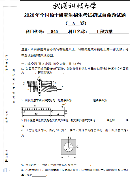 以上就是小編整理的“考研真題:武漢科技大學(xué)845工程力學(xué)2020年碩士研究生招生考試初試自命題試題”的全部內(nèi)容!更多真題資料請關(guān)注“考研專業(yè)課真題”欄目!祝考研成功!