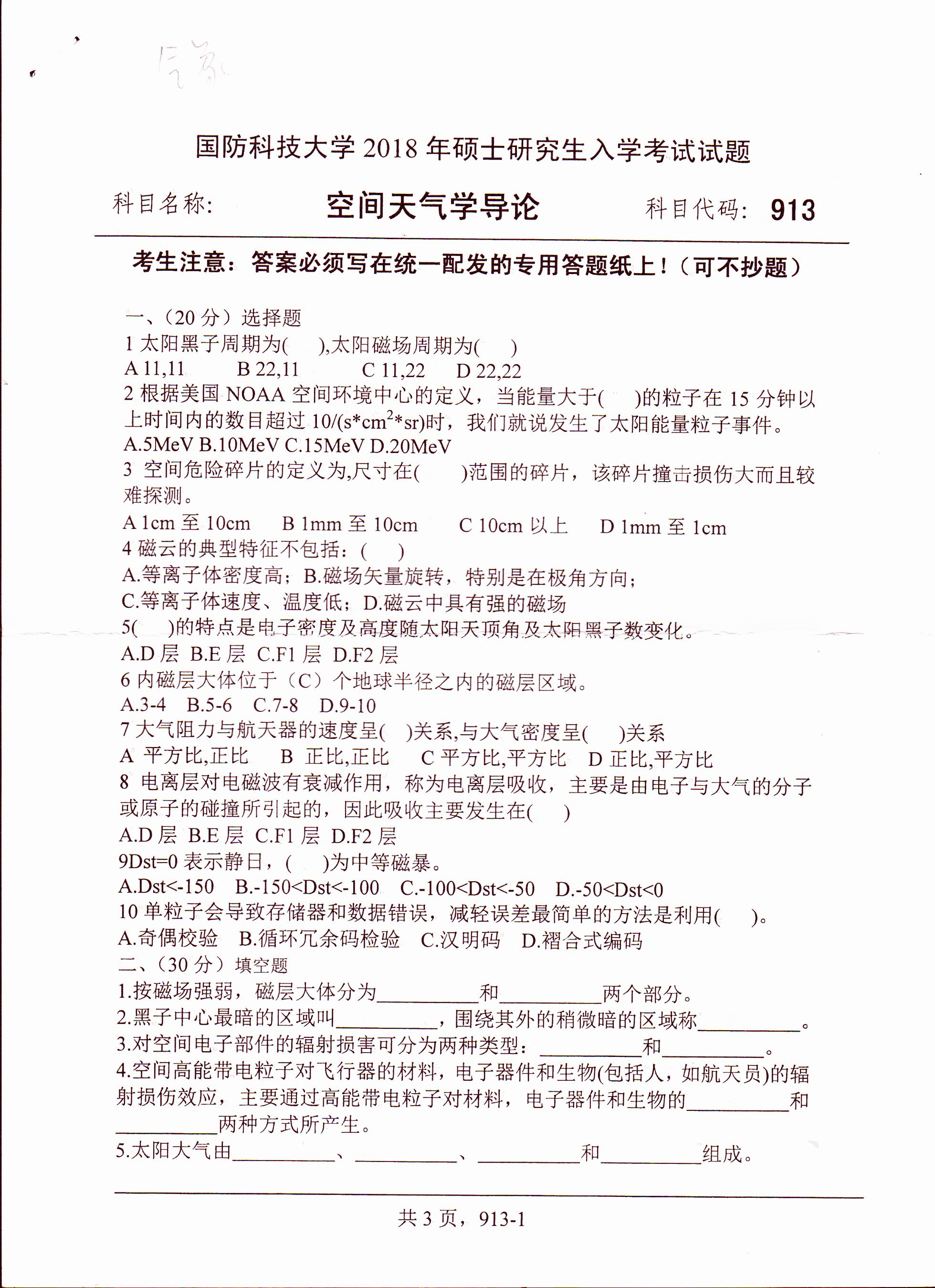 以上就是“考研真題:國防科技大學空間天氣學導論2018年碩士研究生專業課試題”的相關內容,更多考研信息,請持續關注。