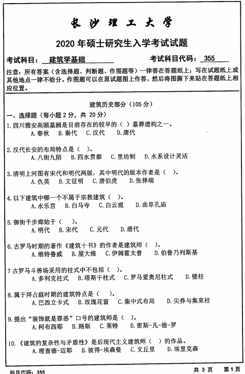 以上就是小編整理的“考研真題:長沙理工大學355建筑學基礎2020年碩士研究生招生考試初試試題”的全部內容!更多真題資料請關注“考研專業課真題”欄目!祝考研成功!