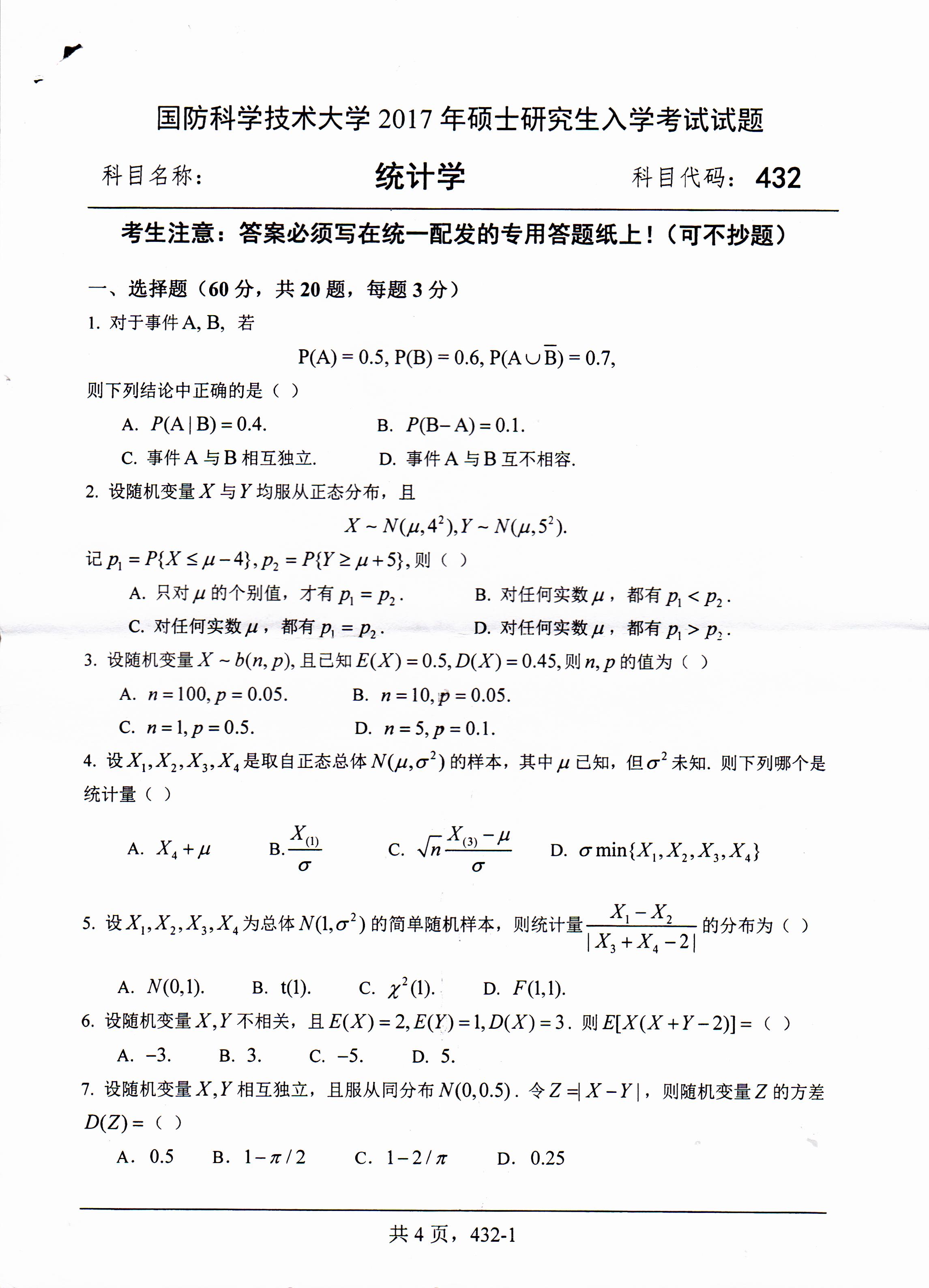 以上就是“考研真題:國防科技大學(xué)統(tǒng)計(jì)學(xué)2017年碩士研究生專業(yè)課試題”的相關(guān)內(nèi)容,更多考研信息,請(qǐng)持續(xù)關(guān)注。
