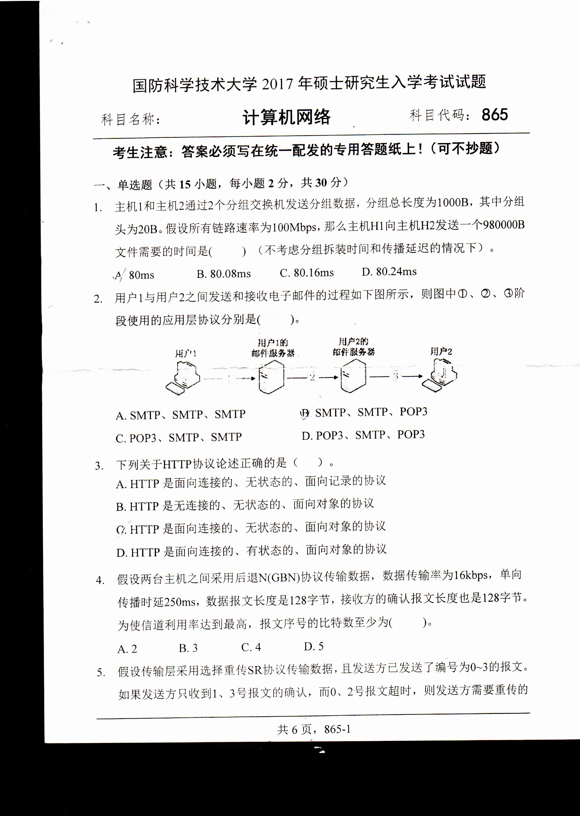 以上就是“考研真題:國防科技大學(xué)計算機網(wǎng)絡(luò)2017年碩士研究生專業(yè)課試題”的相關(guān)內(nèi)容,更多考研信息,請持續(xù)關(guān)注。