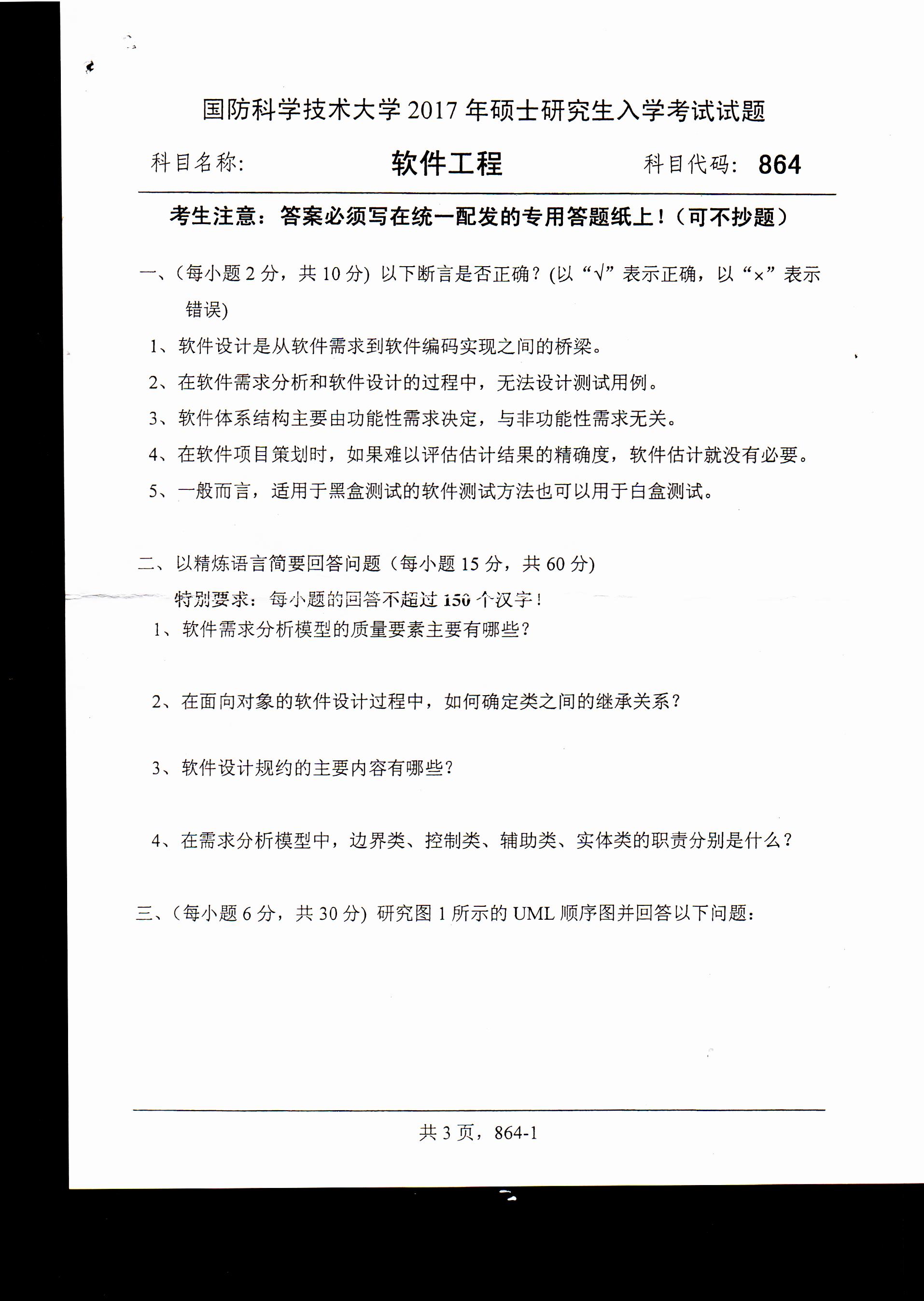 以上就是“考研真題:國防科技大學軟件工程2017年碩士研究生專業課試題”的相關內容,更多考研信息,請持續關注。