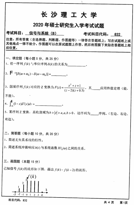 以上就是小編整理的“考研真題:長沙理工大學832信號與系統(B)2020年碩士研究生招生考試初試試題”的全部內容!更多真題資料請關注“考研專業課真題”欄目!祝考研成功!