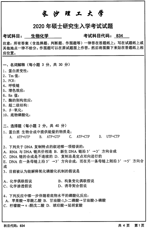 以上就是小編整理的“考研真題:長沙理工大學834生物化學2020年碩士研究生招生考試初試試題”的全部內容!更多真題資料請關注“考研專業課真題”欄目!??佳谐晒Γ?/div>
