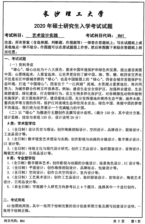以上就是小編整理的“考研真題:長沙理工大學861藝術設計實踐2020年碩士研究生招生考試初試試題”的全部內容!更多真題資料請關注“考研專業課真題”欄目!祝考研成功!