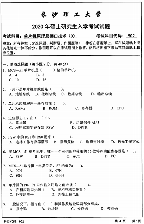 以上就是小編整理的“考研真題:長沙理工大學902單片機原理及接口技術(B)2020年碩士研究生招生考試初試試題”的全部內容!更多真題資料請關注“考研專業課真題”欄目!祝考研成功!