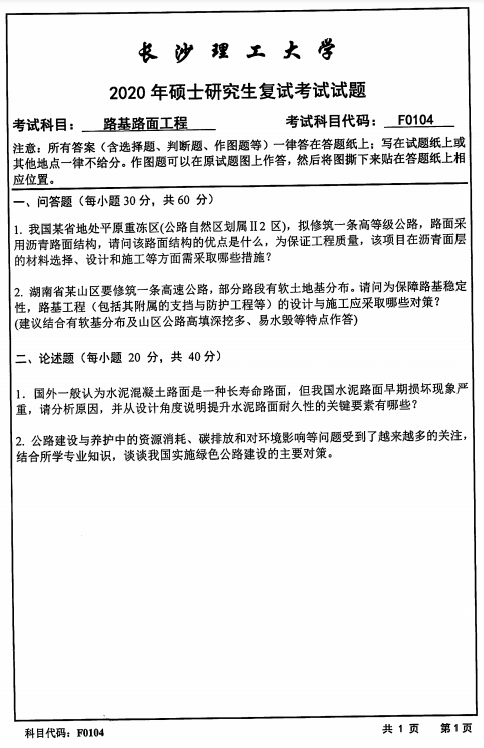 以上就是小編整理的“復試真題:長沙理工大學F0104路基路面工程2020年碩士研究生招生考試復試試題”的全部內容!更多真題資料請關注“考研專業課真題”欄目!祝考研成功!